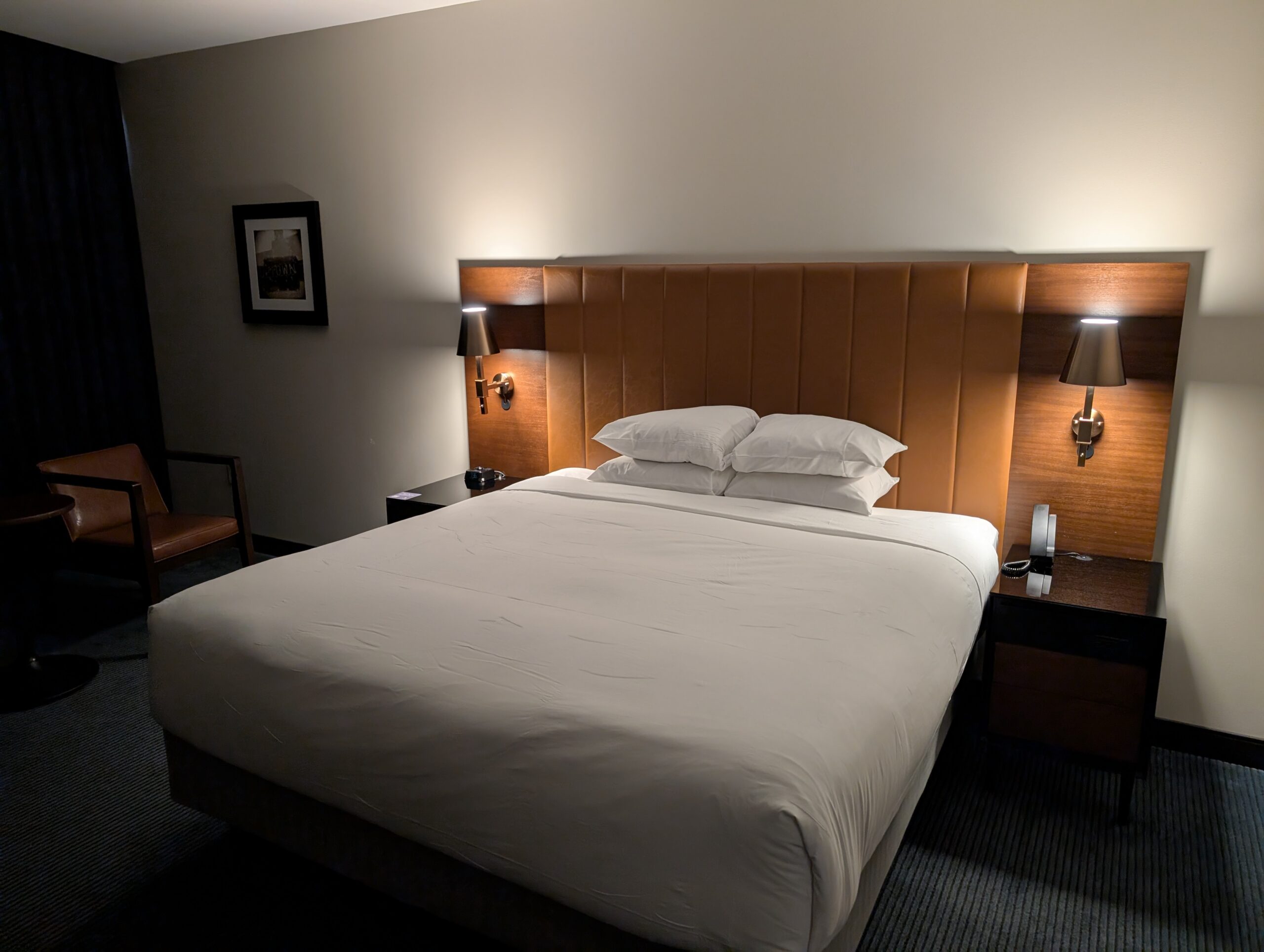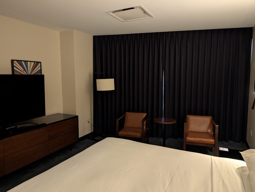 When we arrived at our lodgings, Angela headed to bed while I went to the bar to watch the Notre Dame vs. Miami game with Nathan. I ordered some surprisingly good wings which didn’t come with much of a premium markup. It was another point in the hotel’s favor, for sure.