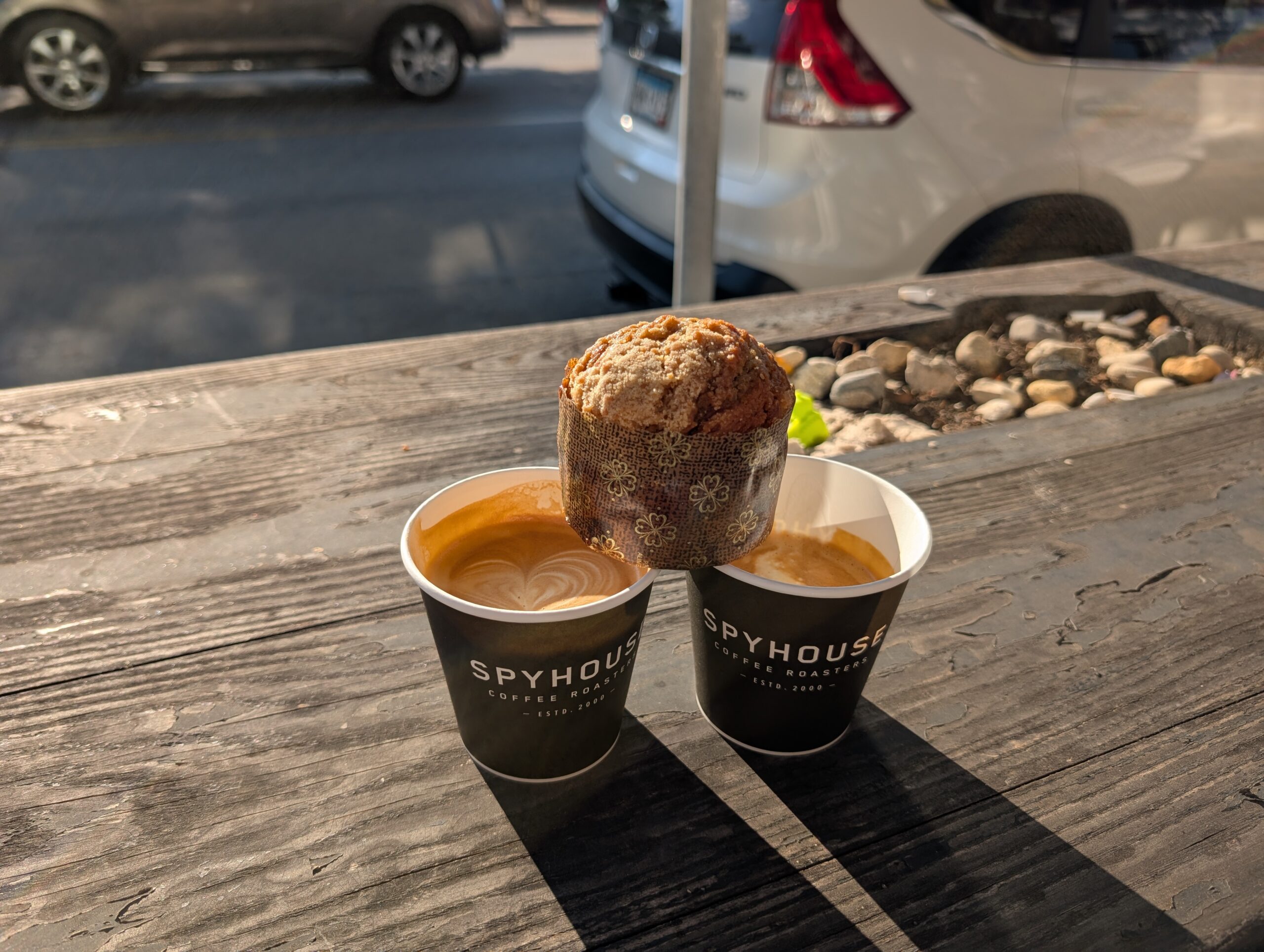 Leaving the gym, we stopped at Spyhouse Coffee Roasters for some coffees and a surprisingly delicious muffin.