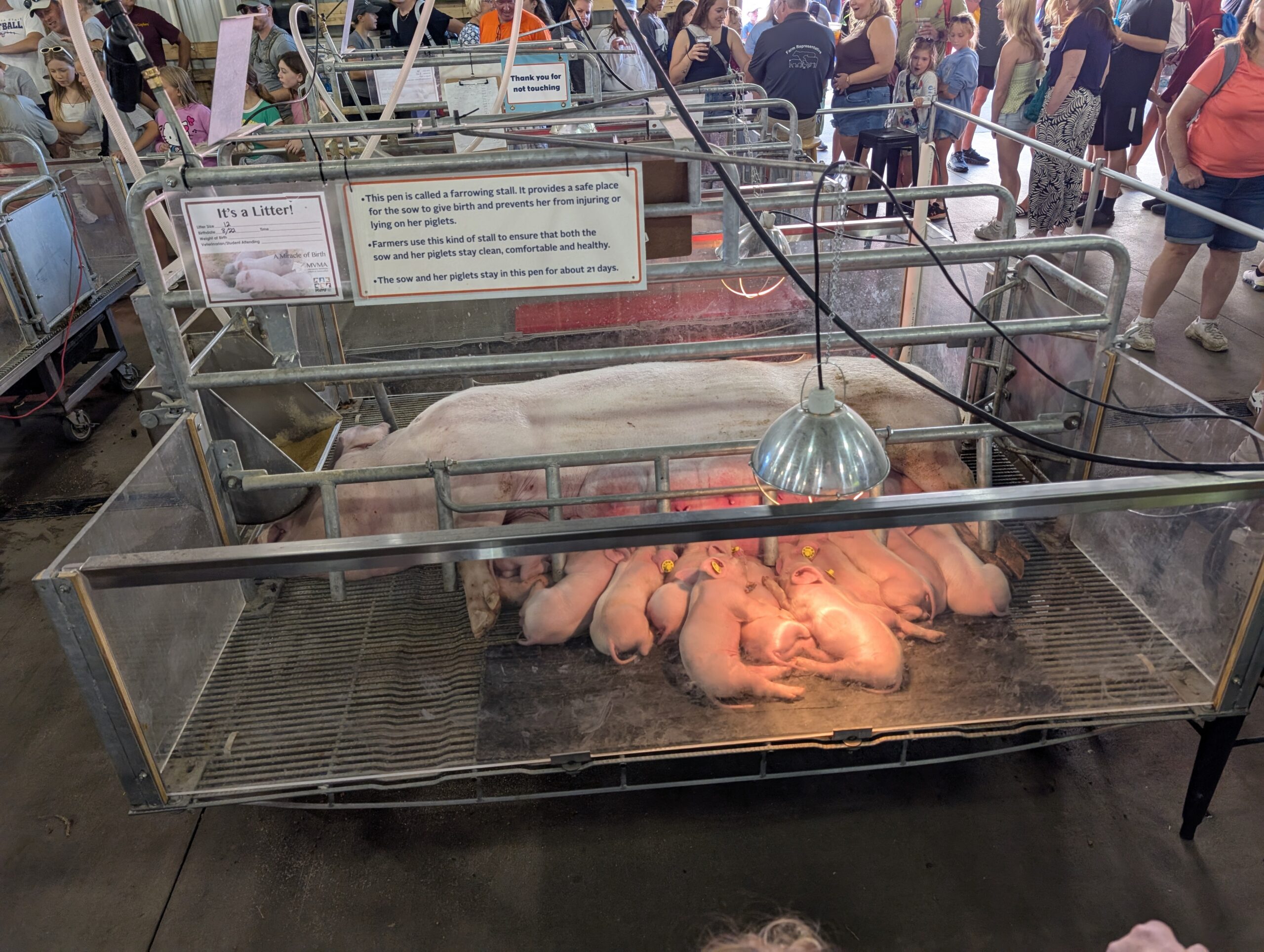 After breakfast we took an Uber to the Minnesota State Fairgrounds and started a very enjoyable day at the Minnesota State Fair. First, we stopped to see all the farm animals, including some that were very recently born.