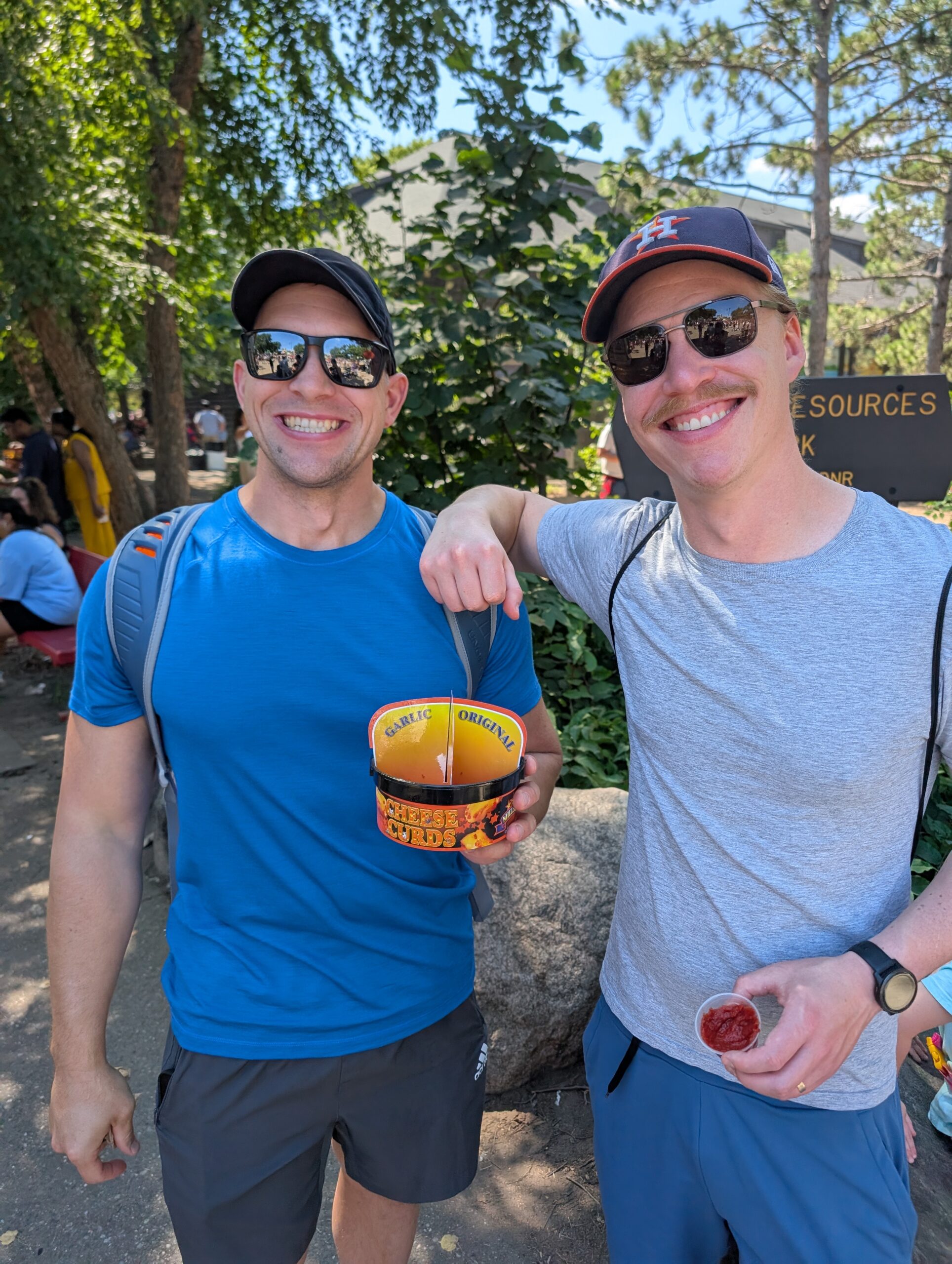 Our friend Jeremiah showed up and found us in the middle of the crowded fair. We decided to grab a variety pack of cheese curds to share. They were delicious.