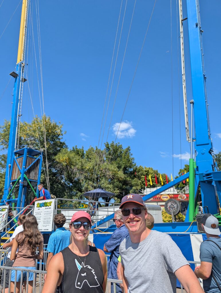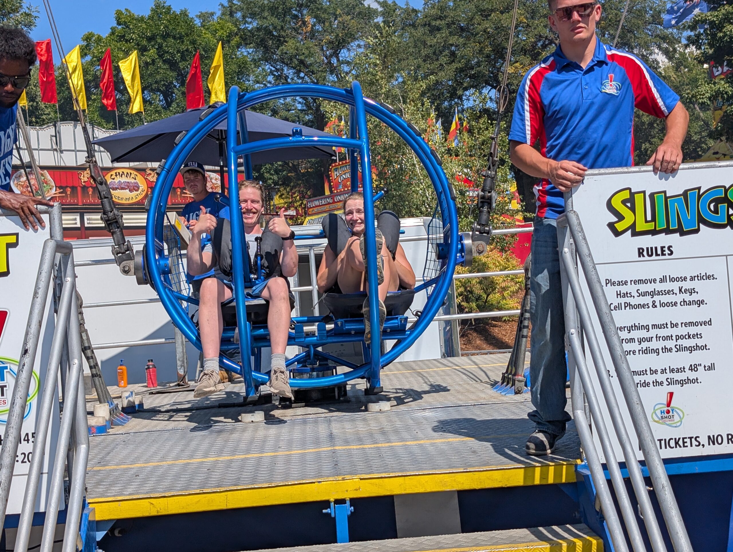 Jeremiah and Angela decided to subject themselves to The Slingshot, one of the small selection of “extreme” fair rides.