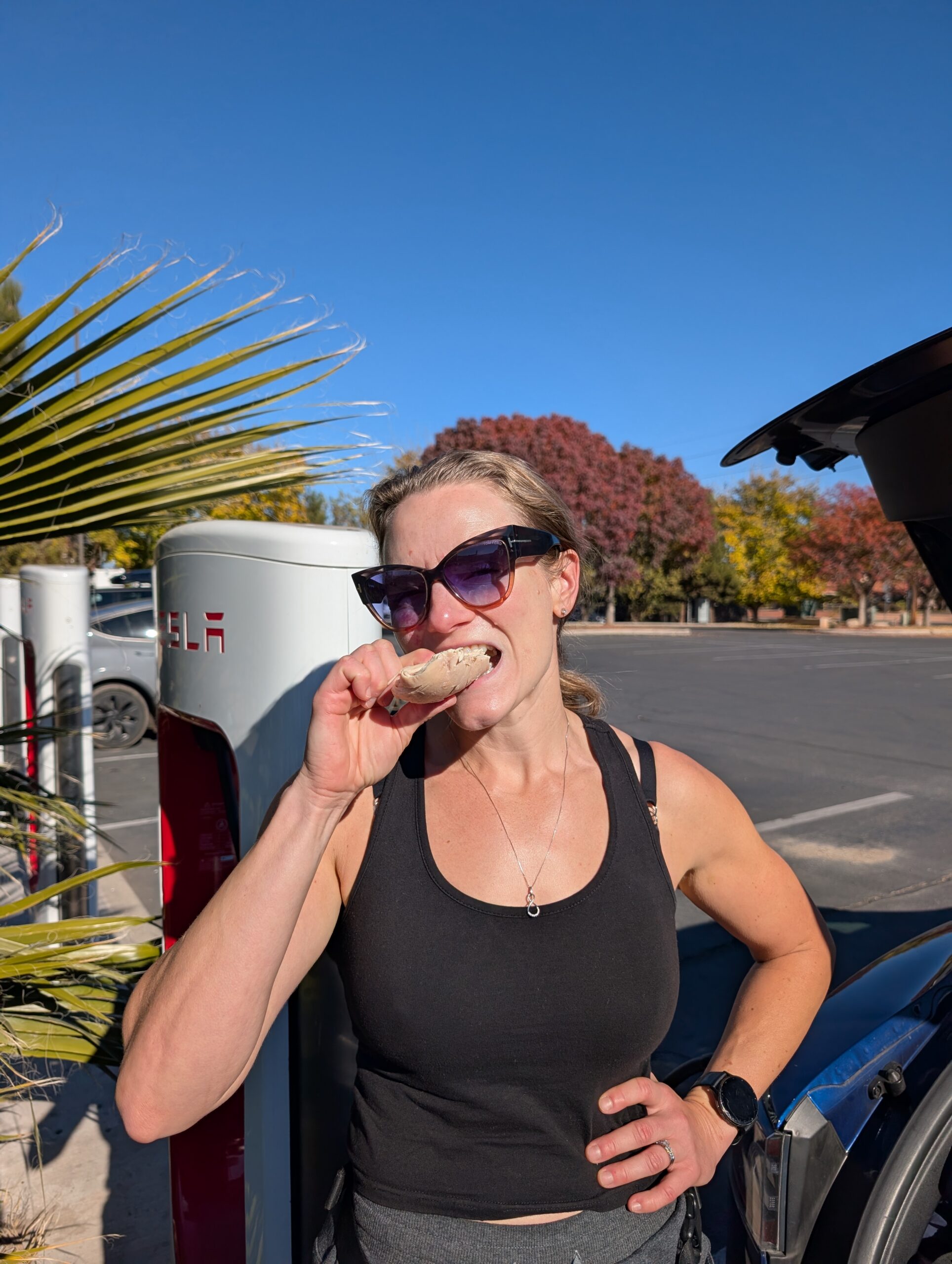 Our first stop was St. George, Utah, where we walked from the charger to a nearby Beans & Brews for coffee before heading back to the car and chowing down on some cold chicken that we brought with us.