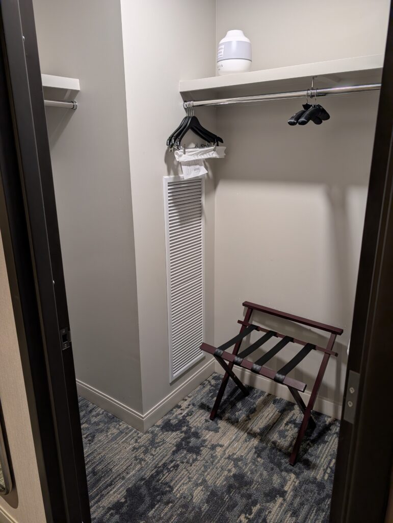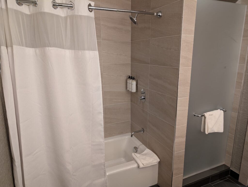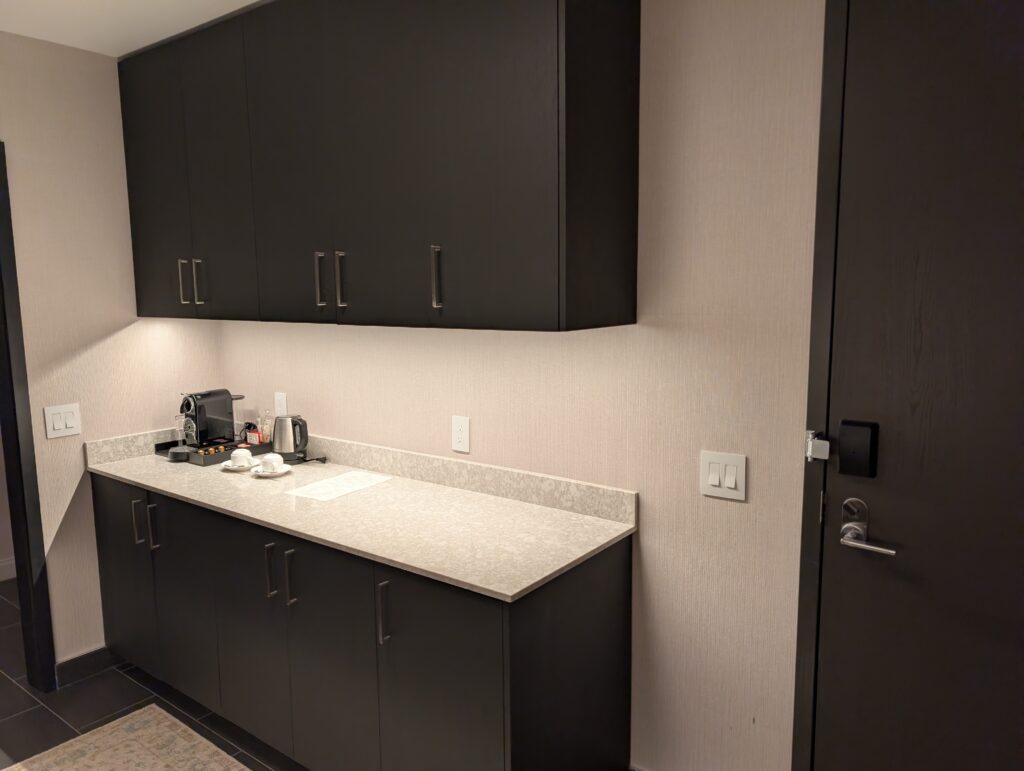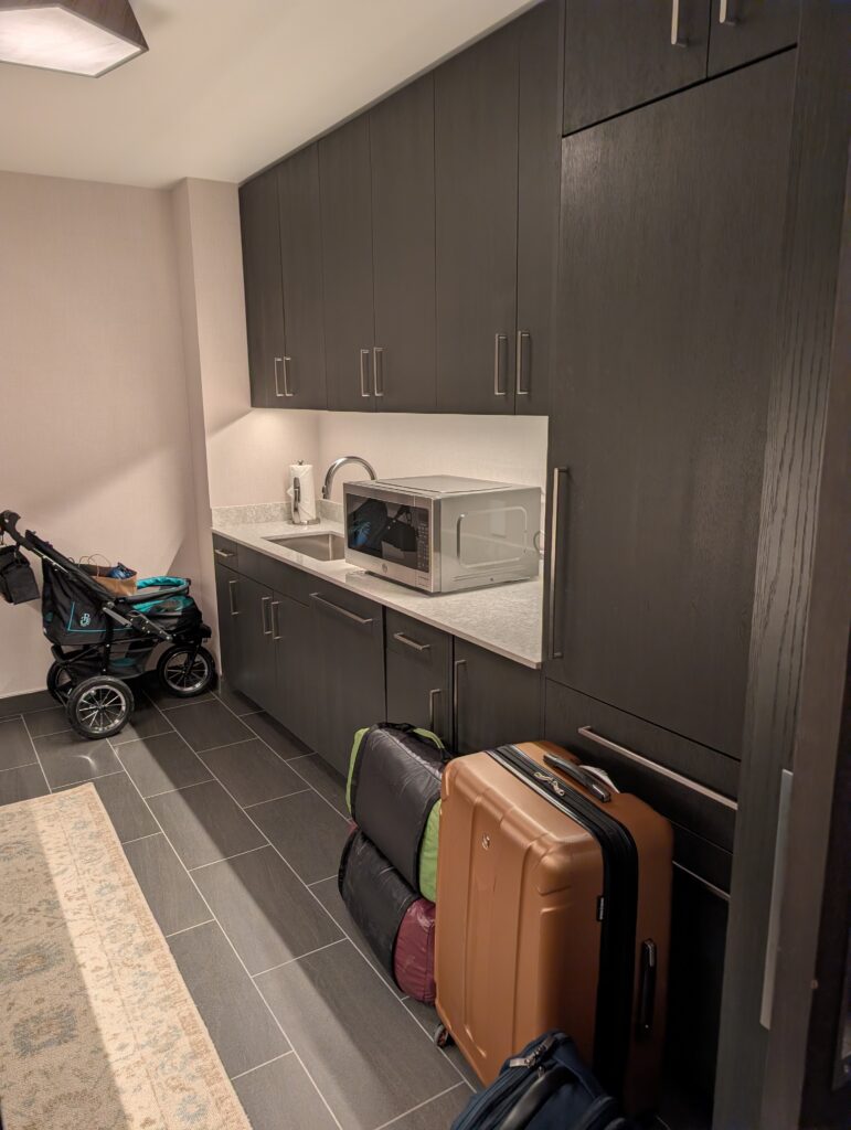 We arrived at our hotel in the early evening. The desk agent was very friendly and gave us a rundown of the property and the amenities available. Unfortunately, the hotel does not offer self-parking options, which makes it hard for us with Fitz because he gets protective of the car.