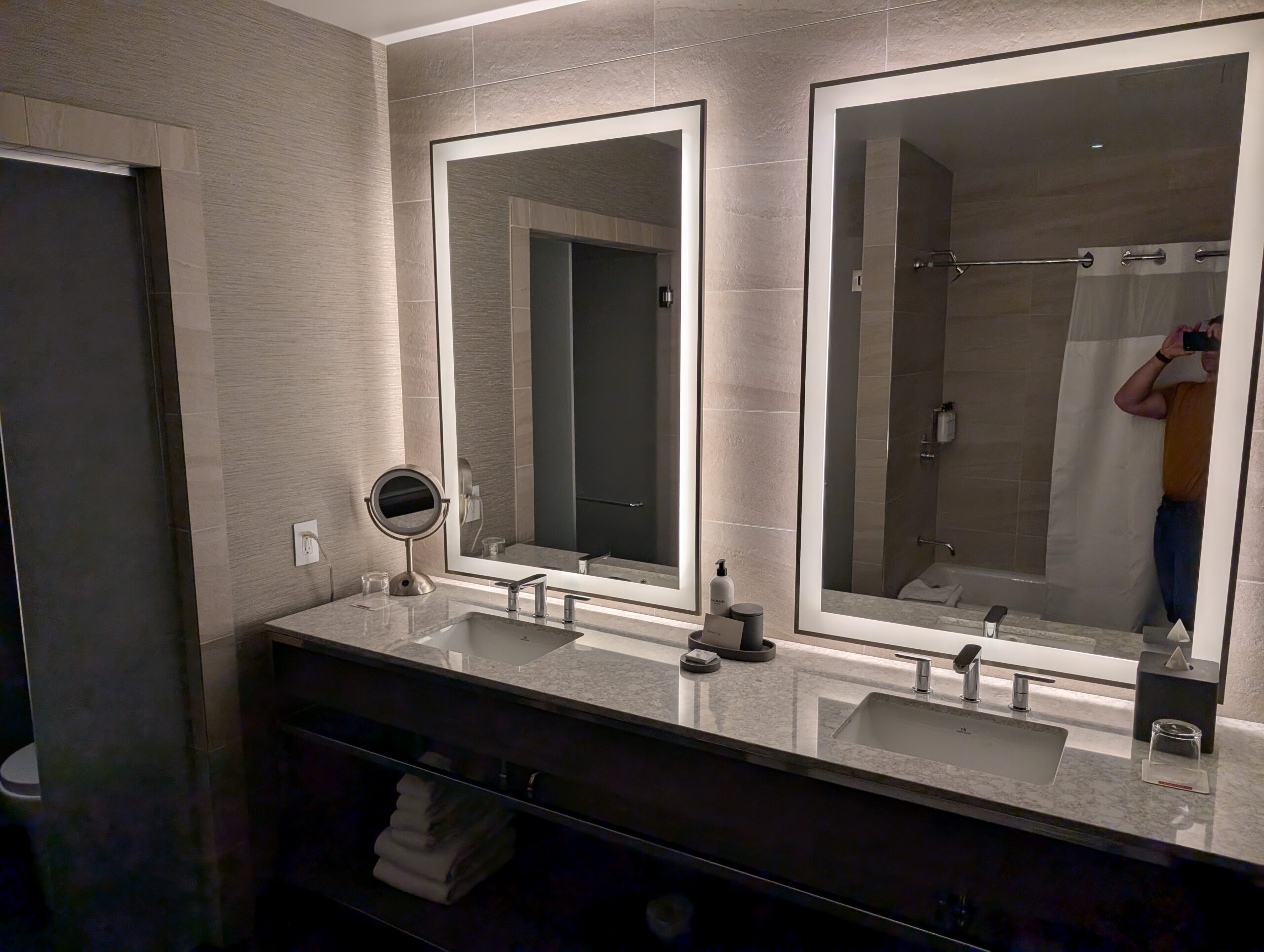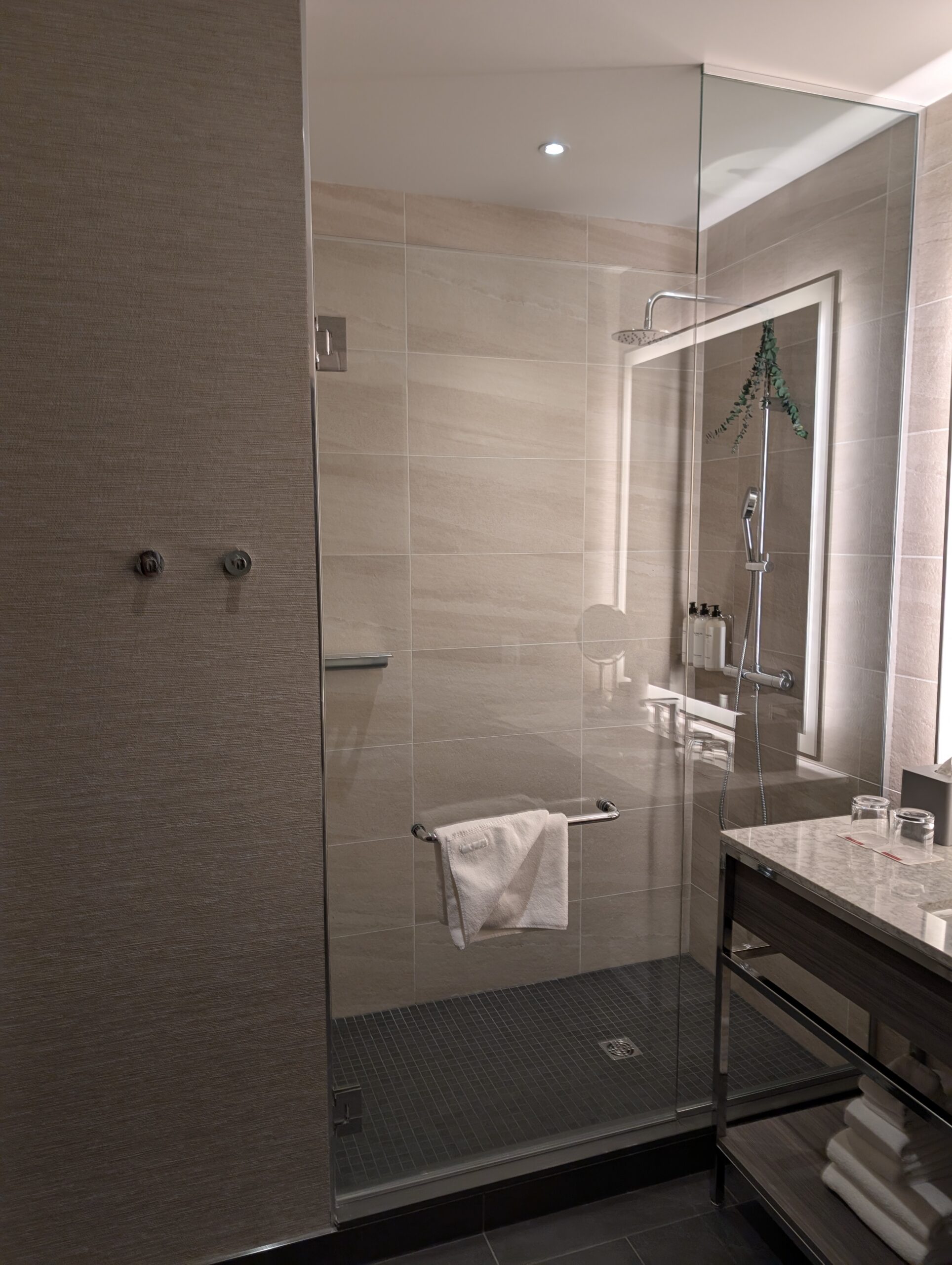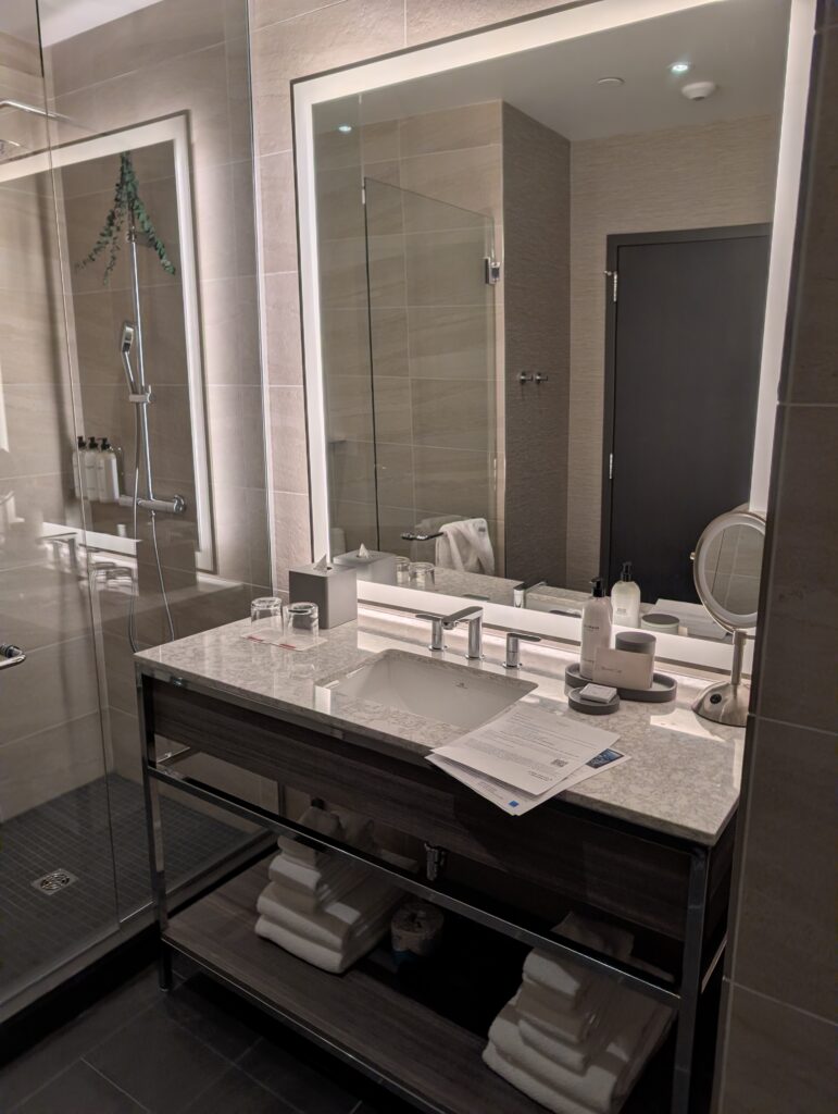 Our room was large and well-appointed with comfortable furnishings, tons of space, and a special welcome for Fitz, which I really appreciated. Guest services also put together a nice display on our bed wishing us a happy anniversary.