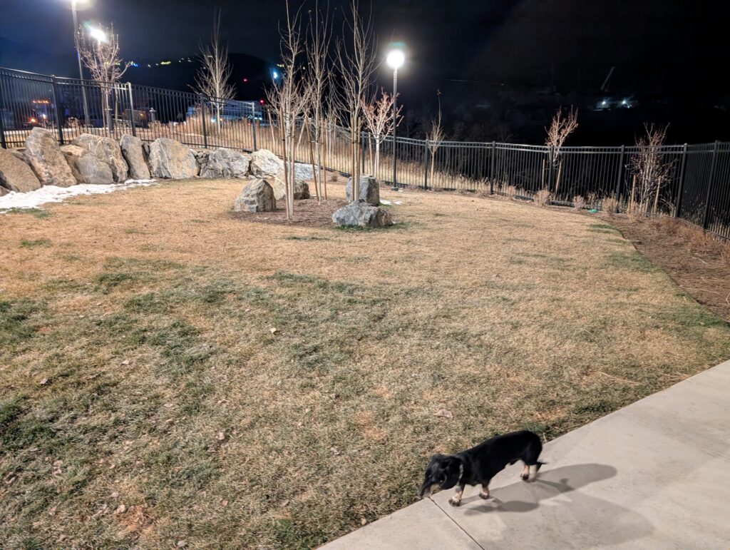 I took Fitz on an exploratory walk of the property as we searched for the dog run. It is very nice that there is a dedicated dog area located close to the front entrance.