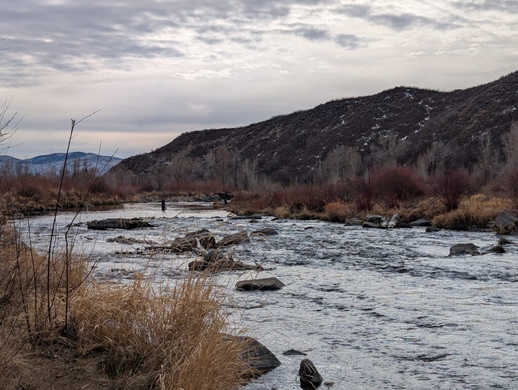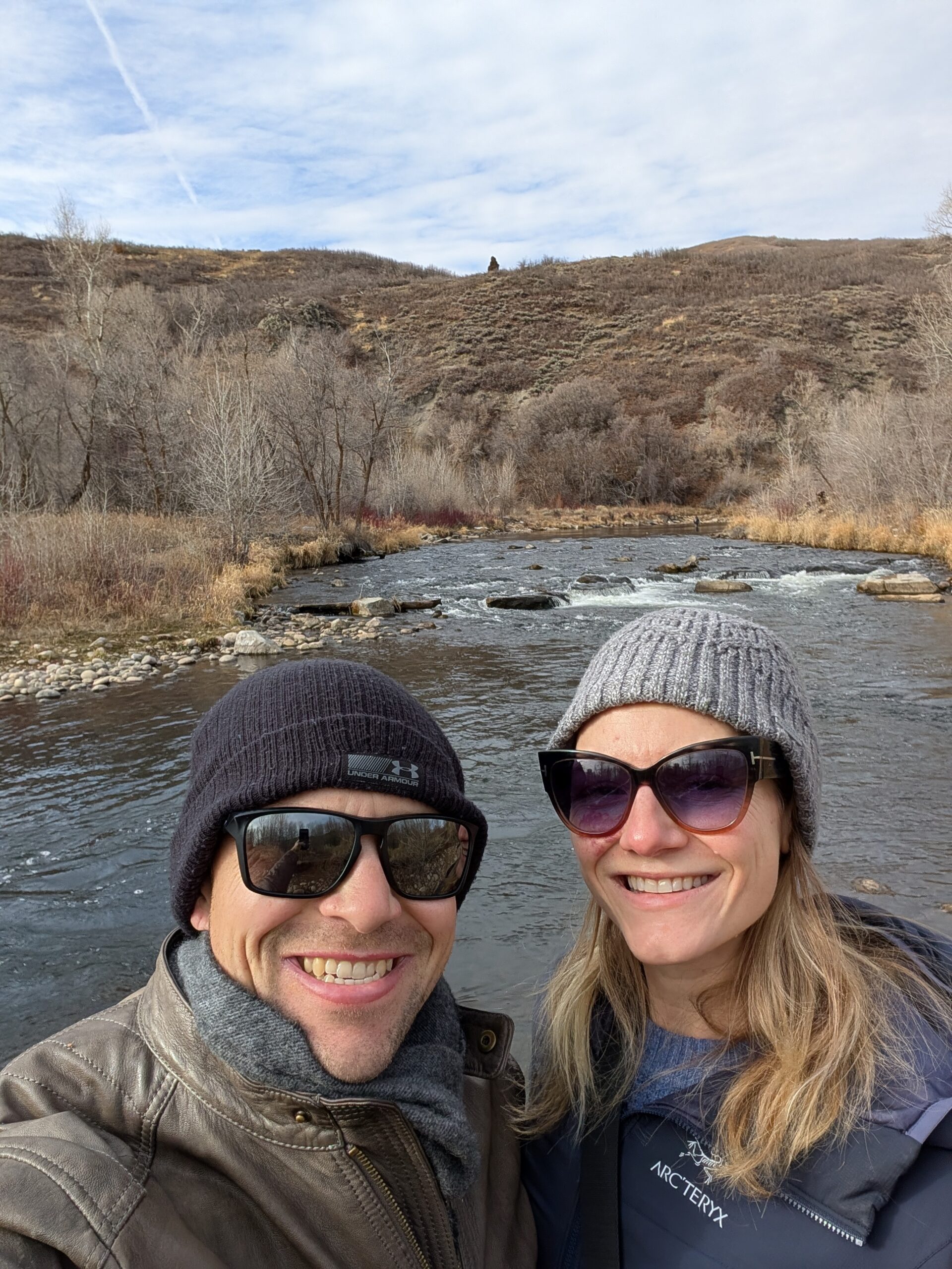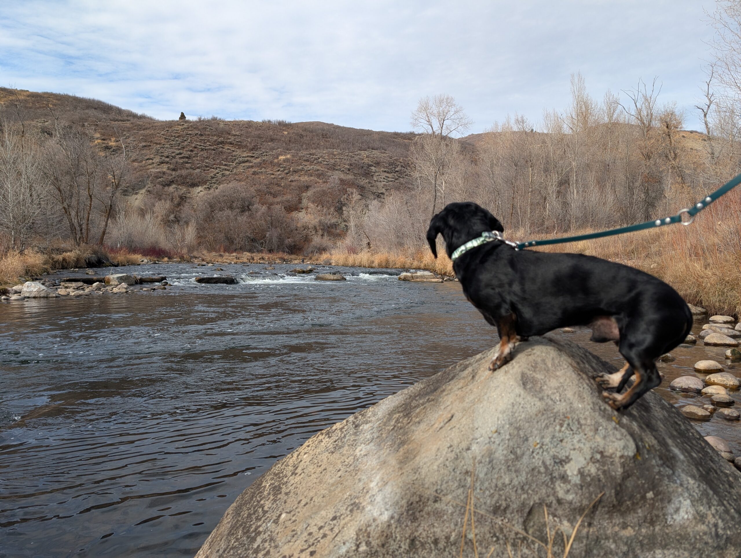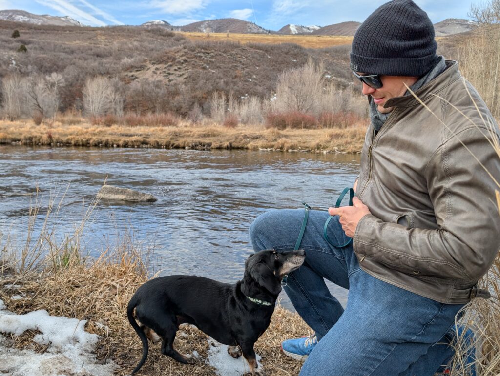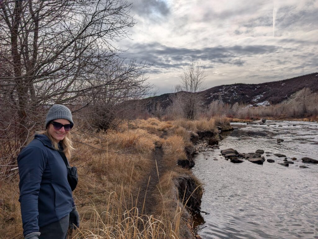 After breakfast, we loaded up the car and drove to the Provo River Walk. It was quite muddy and Fitz definitely engaged all-paw-drive during our two-plus-mile hike. While we started out cold, we definitely warmed up as we trudged along.