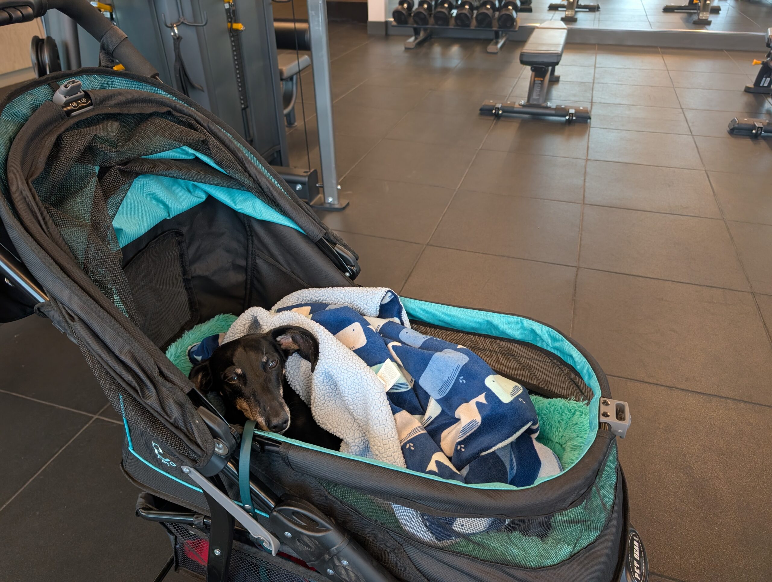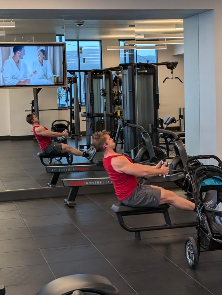 When we returned to the hotel, we worked out in the well-appointed gym. We took the same type of swapping approach as we did during breakfast so that someone would be with Fitz in the room.