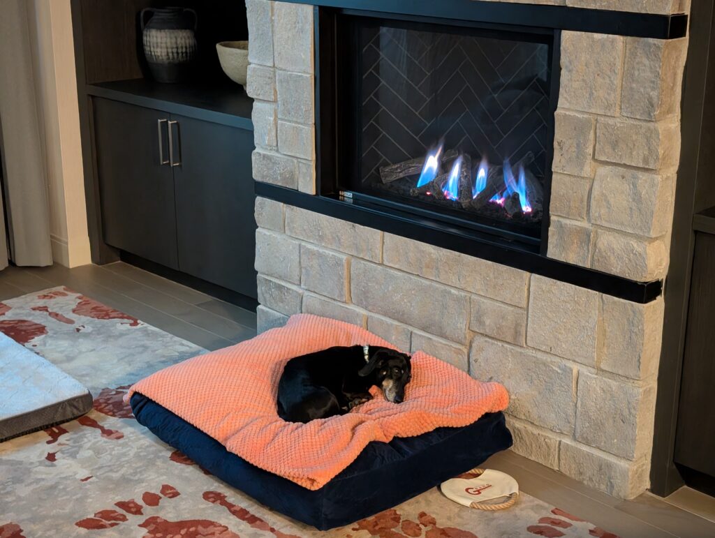We ate dinner in the room and watched Fallout while enjoying a rejuvenating face mask and then played some games before heading to bed. Fitz, of course, tucked himself in by the fireplace.