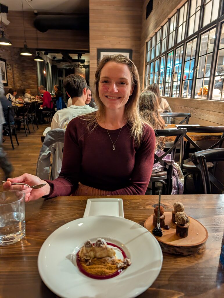 We opted for the prix fixe menu at Firewood and every course was fantastic. Dishes included grilled oyster, beef tartare, quail and agnolotti, vegetables, elk loin, and a chocolate truffle flight. I think this is likely the best set menu I’ve ever tasted. If you’re in the area, we definitely recommend a visit to Firewood on Main.