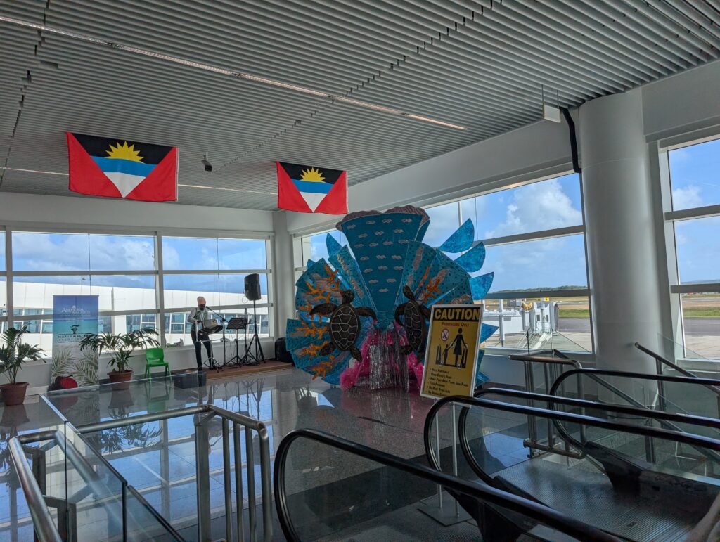 There weren’t a lot of workers on duty when we arrived at the airport so there were lines for every step of the process. They moved along well, though, so it wasn’t too bad and we never felt stalled. Surprisingly, we had to show the QR code from the Arrive Antigua form we filled out before our journey.