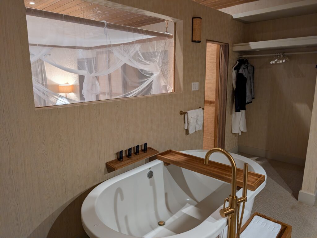 The room also had a guide to the hotel including dining times and locations, so I was never stressed about when something was open. Slippers and flip-flops were both included and there is bug spray available. The agent giving us our room tour strongly recommended we wear it at night.