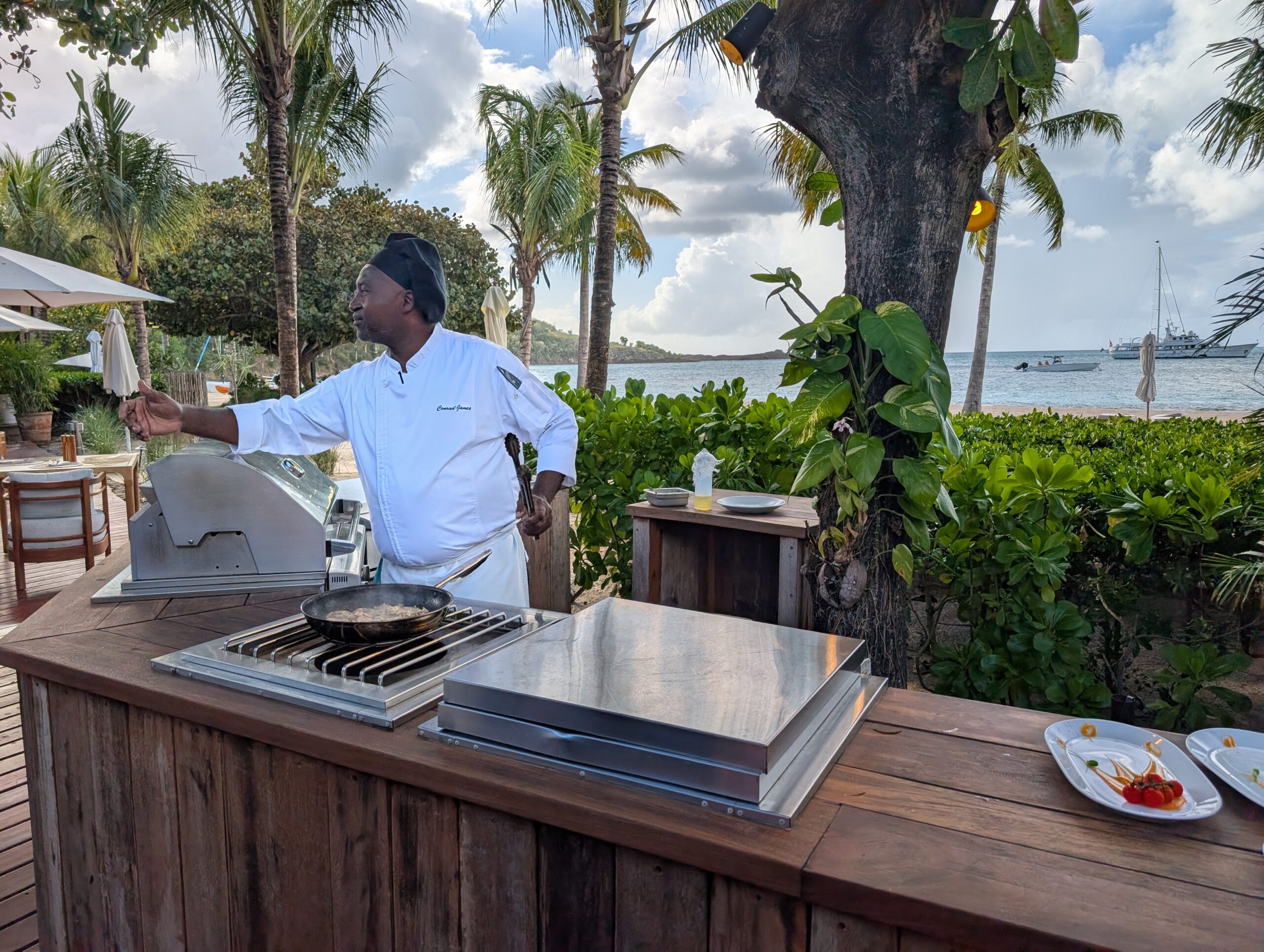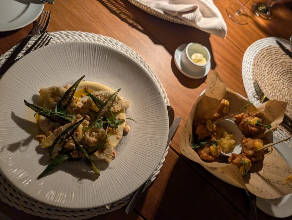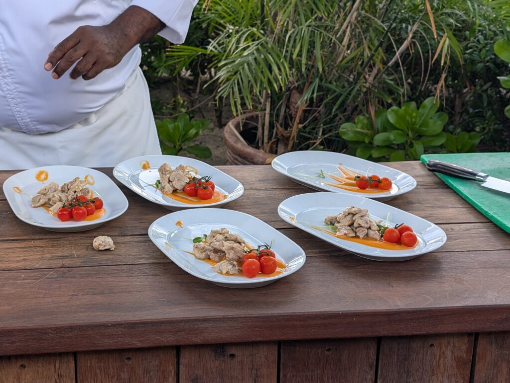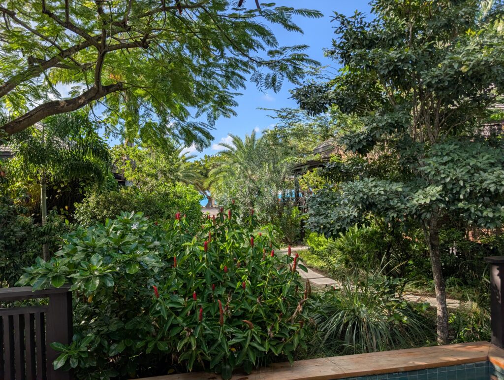 After breakfast, we went on a guided garden walk led by Waba, one of the senior grounds staff. He was great and offered us a lot of information about the property and recent changes that have been made. Apparently, they added more colorful plants and enhanced the foliage around the beach villas for privacy. He also told us that a lot of the herbs, fruits, and vegetables are grown organically on property. Unfortunately, none of the plants were fruiting, but we did get to smell fresh bay leaf and try soursop. If you’re visiting Hermitage Bay, I recommend this forty-minute tour.