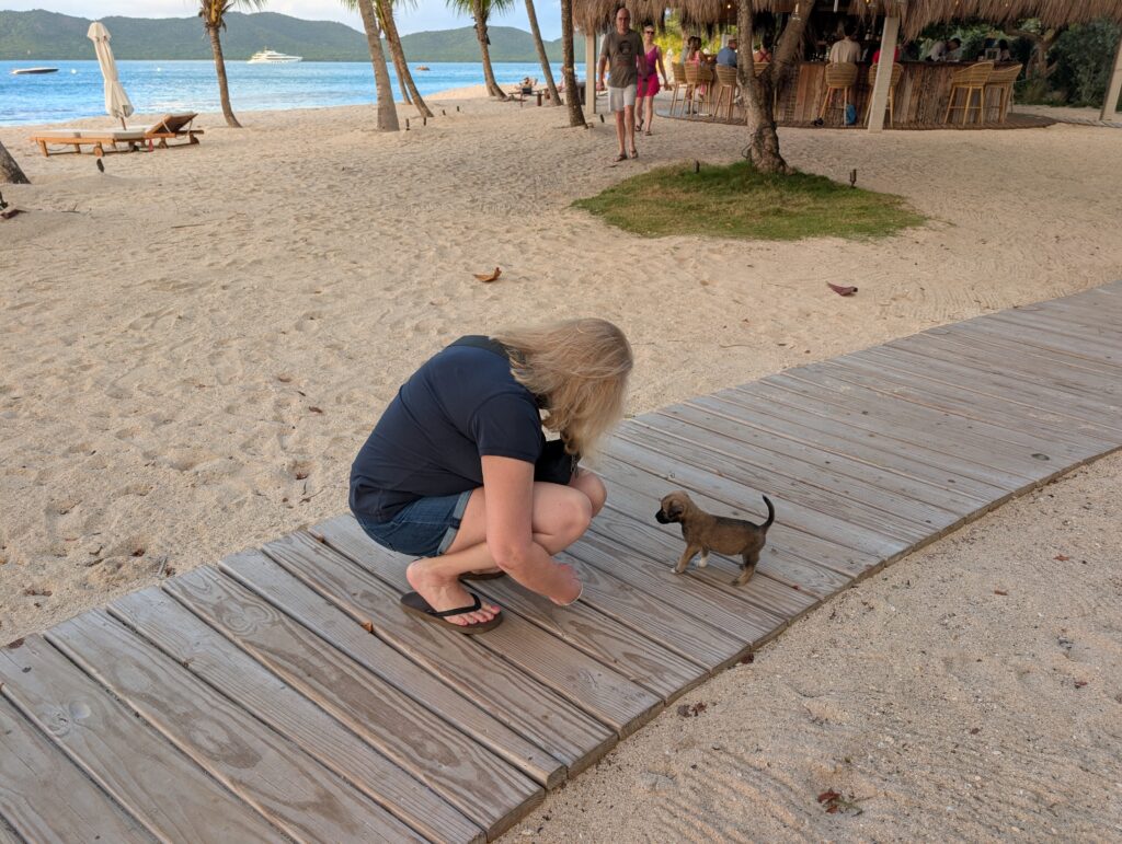 After our delicious fish, we walked along the beach until we hit a rocky outcropping. We got to pet some cute island puppies while we were on our walk.