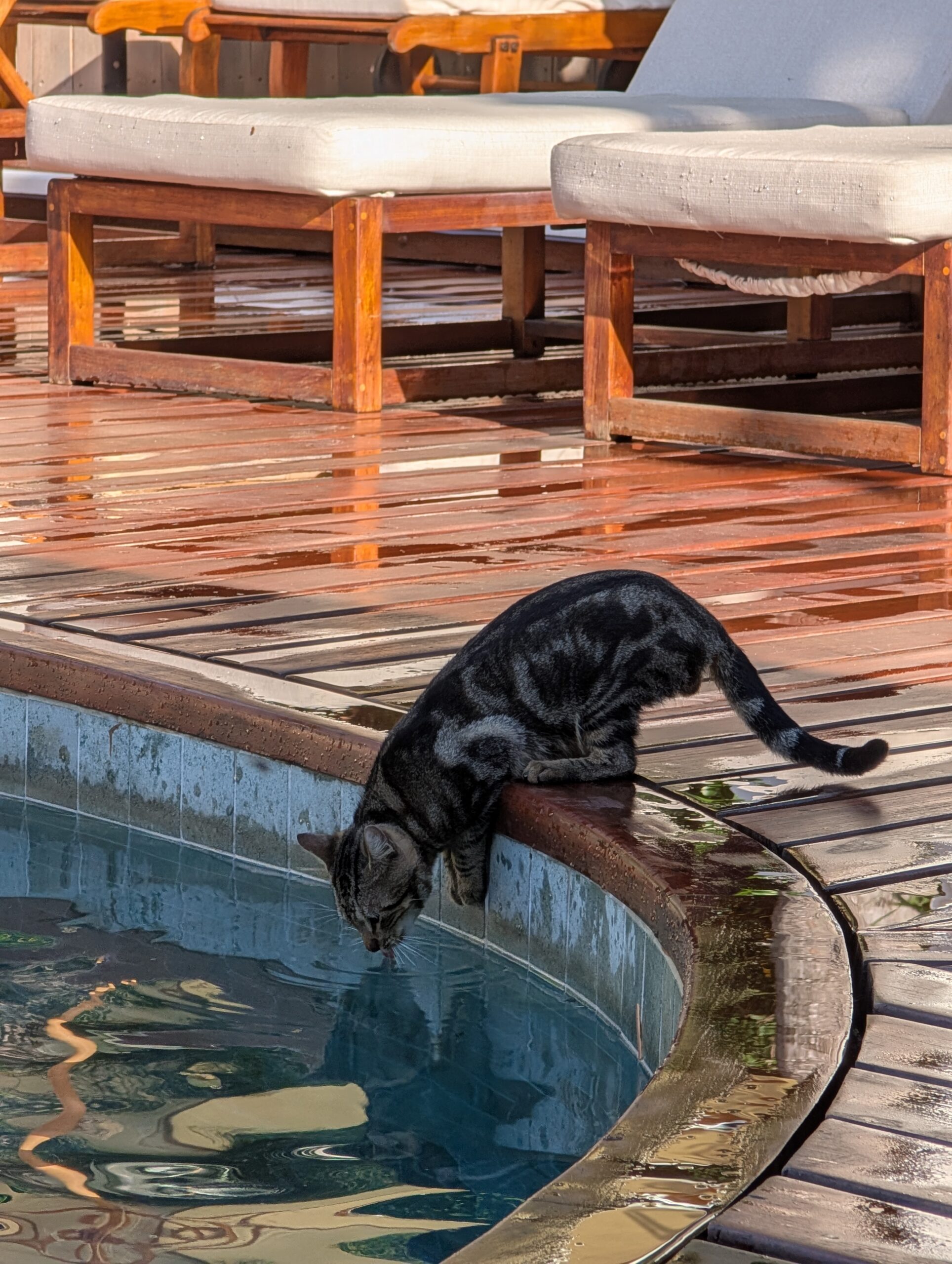 The weather was pleasant with a few intermittent sprinkles and one three-minute period of strong rain. We decided to grab a bite to eat at the bar by the pool. I walked up to get a menu and, surprisingly, the attendant seemed to be bothered by my asking to see one. When I tried to order, she told me to go sit down and she’d come by the table shortly. It was an unfriendly experience that I didn’t expect, especially when so many of the other staff members are extremely kind and happy to help.