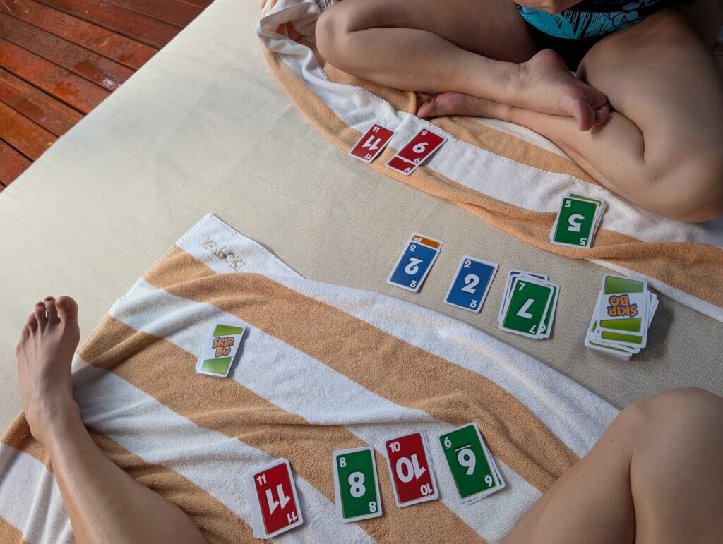 Afterwards, we returned to the room to play two games of Skip-Bo, which my mother won, before getting dressed and heading to dinner.