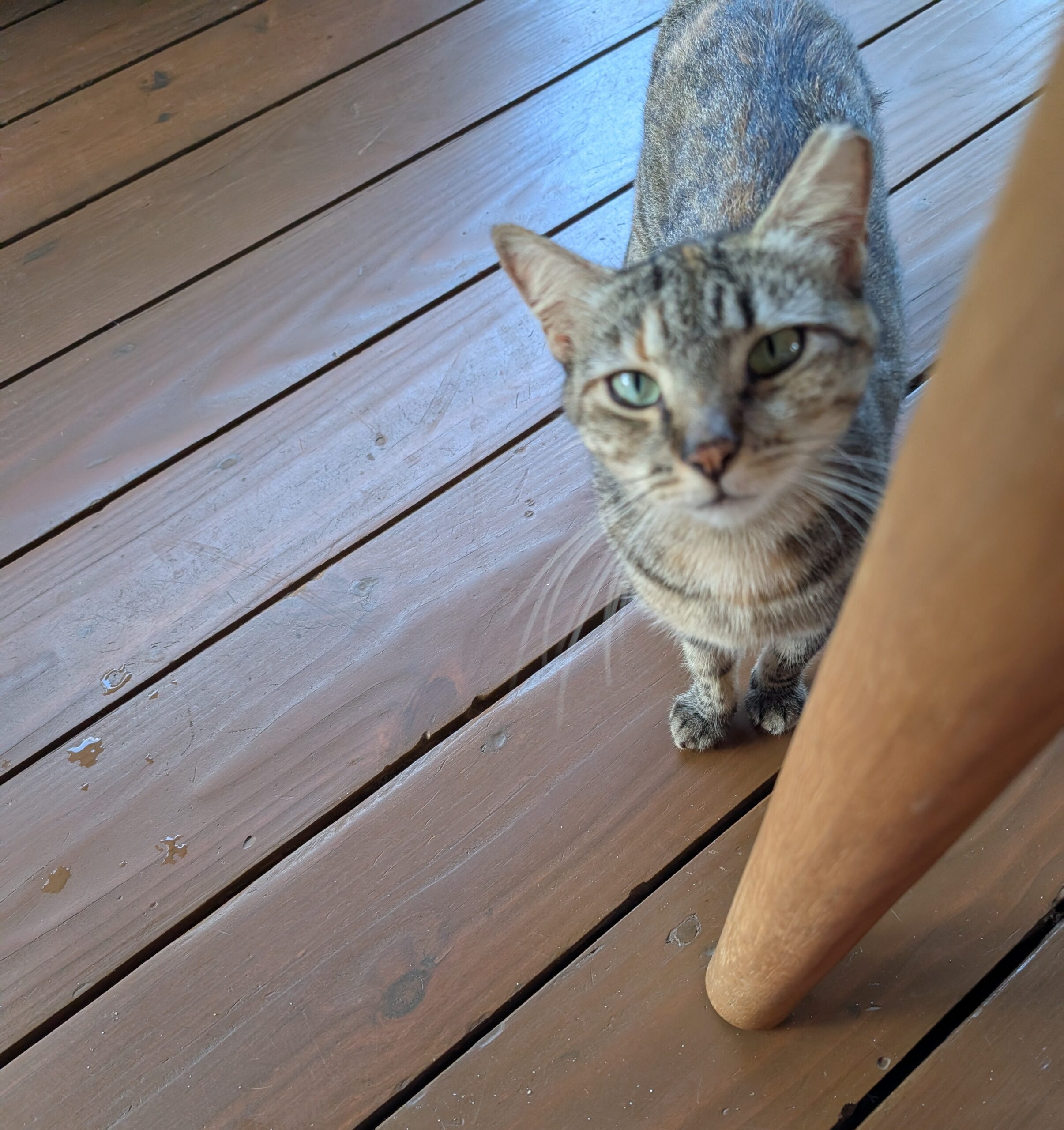 This lucky cat may have gotten a little piece of fish for being so cute.