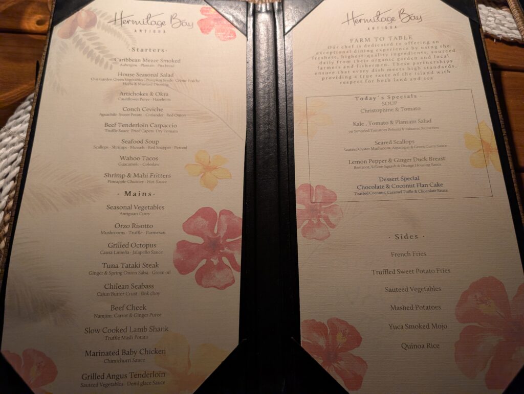 I recently returned from a trip to the tropical paradise of Antigua with my mother. We stayed at an all-inclusive resort, wiling our days away in island luxury while enjoying tasty meals and a few activities. Antigua is beautiful and I would recommend a visit there if you’re in need of ocean-adjacent relaxation uniformly good weather.